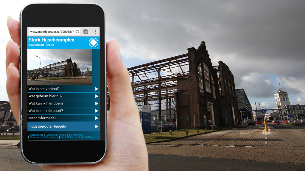 Mobiele media maken ‘hier en nu’-informatie steeds toegankelijker. ‘Meerhierover’ is een landelijk label dat via mobiele websites ter plekke informatie geeft over het gebruik van een historisch gebouw of gebied. Van historische gebouwen wordt gestandaardiseerde informatie gepresenteerd die vooral inzicht geeft in wat je als gebruiker aan zo’n gebouw hebt. Die informatie kun je automatisch krijgen op basis van je locatie, je kunt ter plekke een QR-code scannen of je kunt via de website in het hele aanbod zoeken.